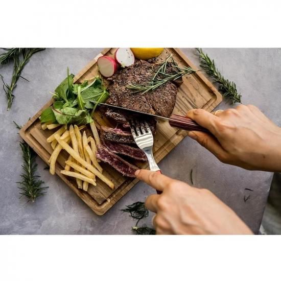 シュラスコエッセンシャルシリーズの天然木カッティングボード。 ミネラルオイル保湿により、メンテナンスが簡単、亀裂や反りが起こりにくい仕様です。リバーシブルで、 溝が入っている面は肉専用、フラット面は野菜専用など、使い分けにより衛生的にお使いいただけます。